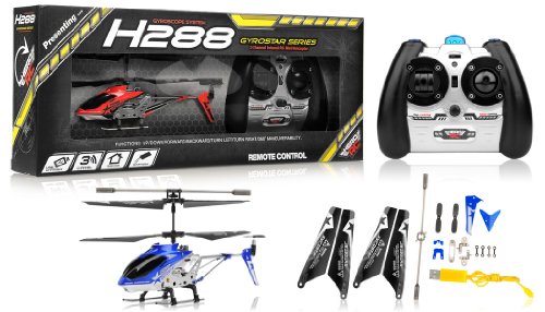 Hero RC H288 Gyro Star RC Remote Control 3 channel Metal Micro Helicopter Genuine and Manufactured by Syma S107/S107G OEM w/ bonus blades, balance bar, connect buckle, tail blade & tail decoration (Blue)