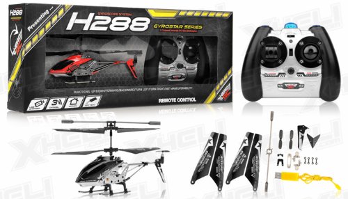 Description : The Hero RC Gyro Star H288 is controlled by a 32-Level high precision speed controller, it automatically stabilizes the rotor blade system for steady lift off. Also, the high tenacity propellers are powered by 2 solid motors with a third motor in the tail rotor, which gives this machine the power you need. The Hero RC Gyro Star H288 comes with a high capability Li-Poly battery which is good for longer flight time, and can easily be recharged through the transmitter that is provided. The Hero RC Gyro Star H288 is a great model for any beginner, from kids to adults.