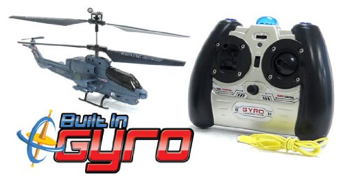 Description : Introducing the GYRO Syma S108G Marines Force 3.5CH RC Helicopter! Featuring a coaxial rotor and a single rear rotor for precise movement and increased stability whether flying or hovering. This RC helicopter has a durable plastic body making it strong yet light weight so you don't have to worry about breaking anything when you land it a bit too rough. It can go forward, backward, up, down, left, right and hover. This RC is the perfect size for indoor and outdoor use at 9 inches long, 7.5 inch wingspan and 3.5 inches high! This product is suitable for ages of 14 and up and is ready to run, there is no assembly necessary. All you need to do is charge the battery with either the included USB charger or the transmitter's charging cord, and get 6 AA batteries for the transmitter and you are on your way! A must have for fans of helicopters, get the GYRO Syma S108G Marines Force 3.5CH RC Helicopter today!